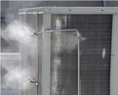 噴淋外機(jī)降溫系統(tǒng)通過在空調(diào)外機(jī)上安裝噴淋裝置,利用水噴淋的方式直接對(duì)外機(jī)進(jìn)行降溫。在高溫天氣條件下,通過噴水降低室外機(jī)的溫度,從而提高其制冷效率和降低能耗。噴淋過程中,水蒸發(fā)時(shí)會(huì)吸收周圍環(huán)境的熱量,進(jìn)而達(dá)到降溫的效果。